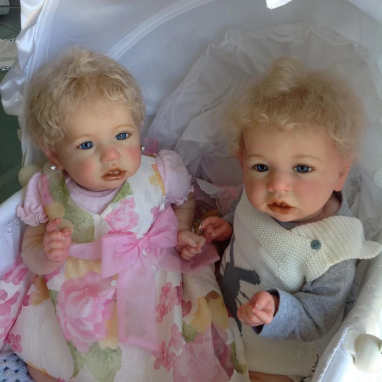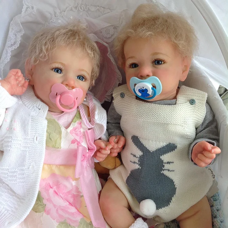 [Reborn Boy and Girl Twins] 20” Realistic Toddler Girl and Boy Twins Reborn Baby Dolls with Curly Blonde Hair Cecilia and Celab